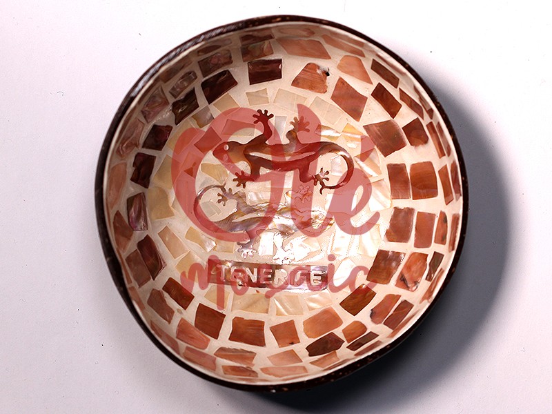 Bol de coco marrón decorado con un diseño singular de salamandra, originario de Tenerife. Este atractivo bol, elaborado artesanalmente con motivos de mosaico, presenta una combinación de tonos marrones, beige y detalles nacarados. En el centro, la inscripción « Tenerife » destaca su procedencia. Perfecto como pieza decorativa o para guardar objetos, este bol añade un toque canario a cualquier hogar.