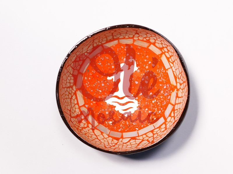 Bol de coco de un vibrante color naranja, con un diseño muy especial de una bailaora en el centro. Este atractivo bol, hecho de coco, presenta un acabado pulido y detalles en blanco que evocan el arte flamenco. El interior, con un patrón de mosaico, añade textura y calidez, mientras que su forma redonda lo convierte en un elemento decorativo ideal para cualquier hogar. Perfecto para servir aperitivos o simplemente como pieza decorativa, refleja la esencia del folclore español.