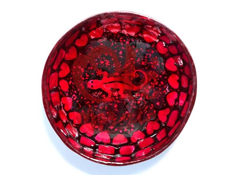 Olé Mosaic » Bols » Bol en noix de coco rouge. Salamandre. Motif cœurs.