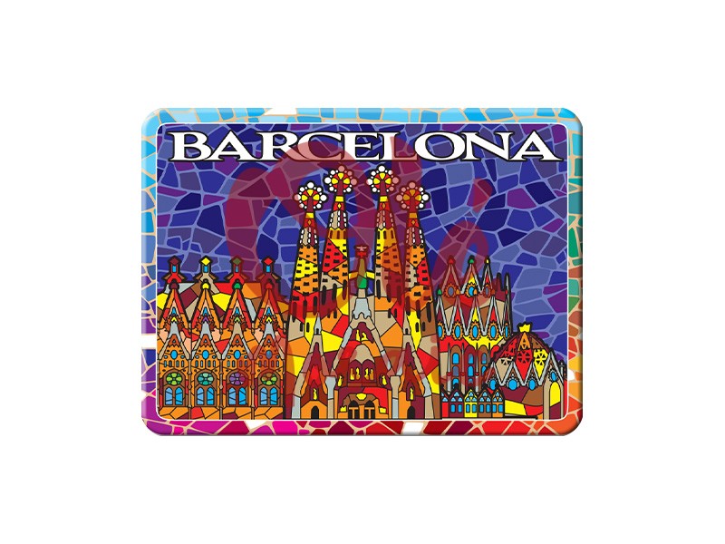 Aimant métallique de 8 cm avec une représentation vibrante de la Sagrada Familia, le monument emblématique de Barcelone. Cet article se distingue par son design coloré en mosaïque, qui capture l’essence architecturale de l’œuvre maîtresse de Gaudí. Avec le mot « Barcelona » en lettres proéminentes, l’aimant présente des détails complexes dans des tons chauds et froids, faisant allusion aux multiples facettes de la célèbre basilique. Il est parfait pour se souvenir de votre visite dans la ville.