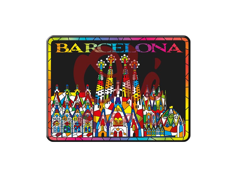 Cet aimant métallique représente l’emblématique Sagrada Familia de Barcelone, chef-d’œuvre de l’architecte Antoni Gaudí, et constitue le souvenir parfait de la ville comtale. Mesurant 8 cm, l’aimant se distingue par son design vibrant, avec une palette de couleurs variées sur un fond noir. L’illustration capture la majesté de la Sagrada Familia, montrant ses tours distinctives aux formes géométriques et aux détails ornementaux qui évoquent la riche tradition du modernisme catalan.
