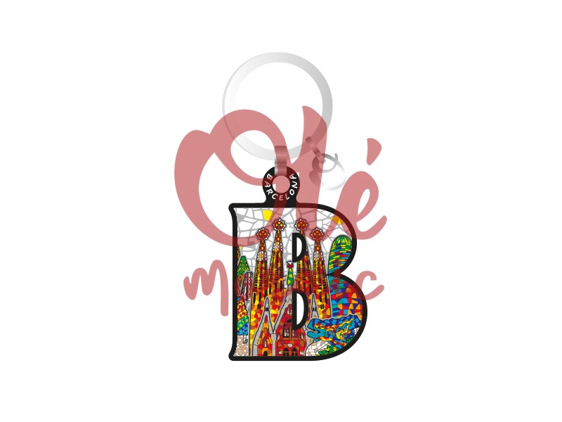 Porte-clés en bois en forme de lettre B, inspiré par la ville emblématique de Barcelone. Le design présente une illustration vibrante de la Sagrada Familia, avec ses tours en rouge, jaune et vert, ainsi qu’une mosaïque colorée et des détails de style moderniste. La pièce est soigneusement conçue de manière artisanale, peinte à la main, mettant en valeur la richesse culturelle de la ville. Un souvenir parfait qui capture l’essence de Barcelone dans un accessoire pratique.