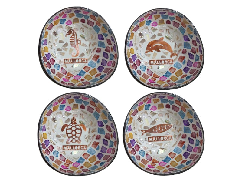 Olé Mosaic » Bols » 4 Bols de coco de 13 x 6 cm. Animales del mar. Mosaico. Mallorca.