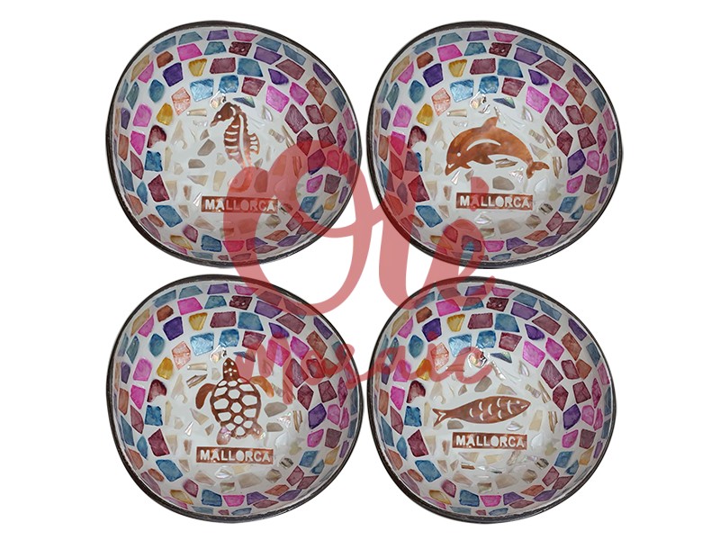 Olé Mosaic » Bols » 4 Bols de coco de 13 x 6 cm. Animales del mar. Mallorca.