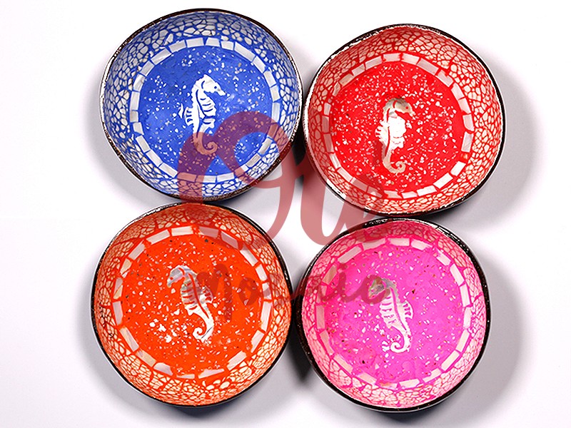 Olé Mosaic » Bols » 4 Bols de coco de 13 x 6 cm. Caballito de mar. Fondo blanco.