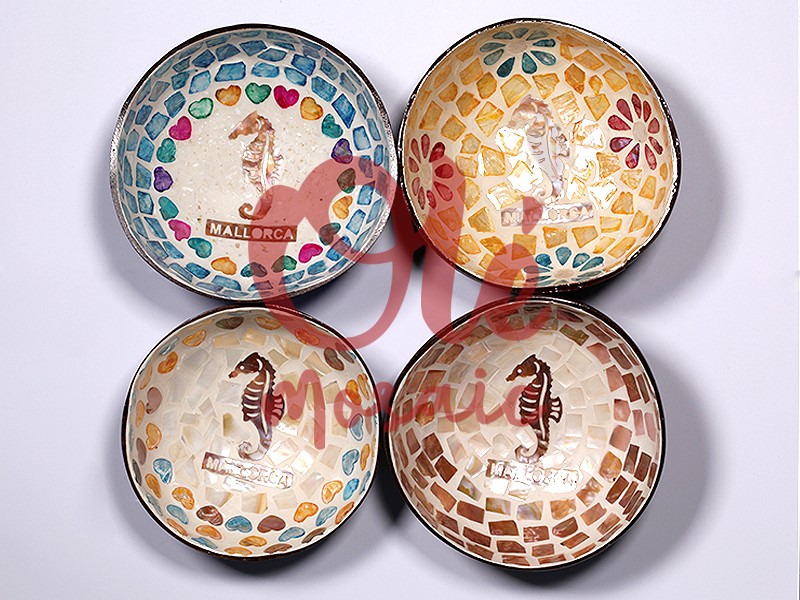 Olé Mosaic » Bols » 4 Bols de coco de 13 x 6 cm. Caballito de mar. Isla. Mallorca.
