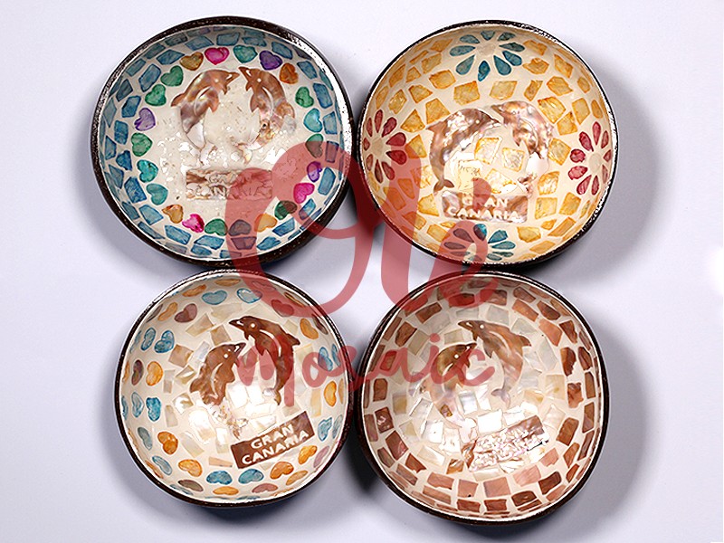 Olé Mosaic » Bols » 4 Bols de coco de 13 x 6 cm. Delfín. Gran Canaria.