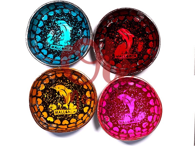 Olé Mosaic » Bols » 4 Bols de coco de 13 x 6 cm. Delfín. Mallorca.