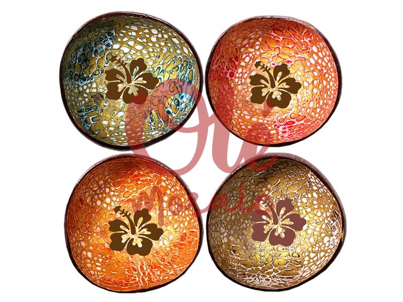 Olé Mosaic » Bols » 4 Bols de coco de 13 x 6 cm. Motivo en hibisco. Ibiscus.