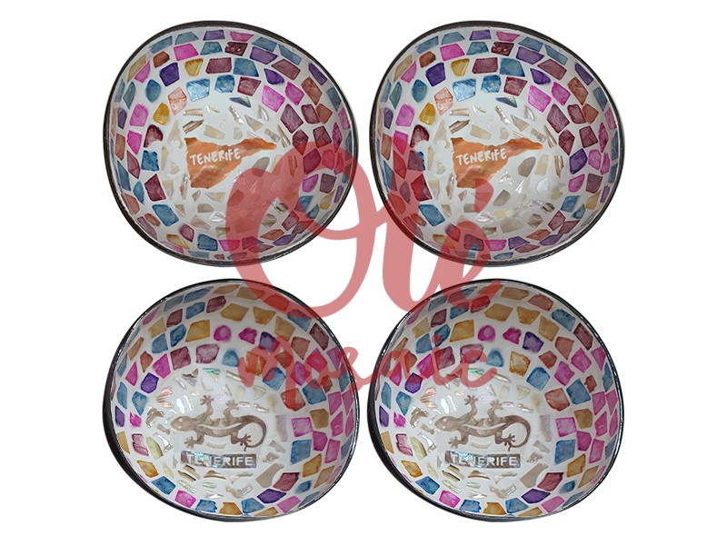 Olé Mosaic » Bols » 4 Bols de coco de 13 x 6 cm. Isla + salamandra. Tenerife.