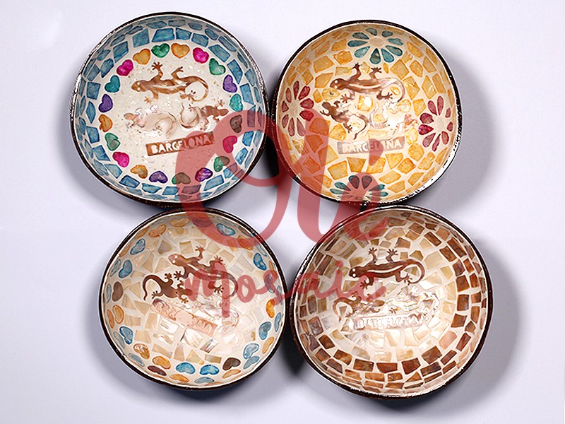 Olé Mosaic » Bols » 4 Bols de coco de 13 x 6 cm. Salamandra. Arquitectura. Barcelona.
