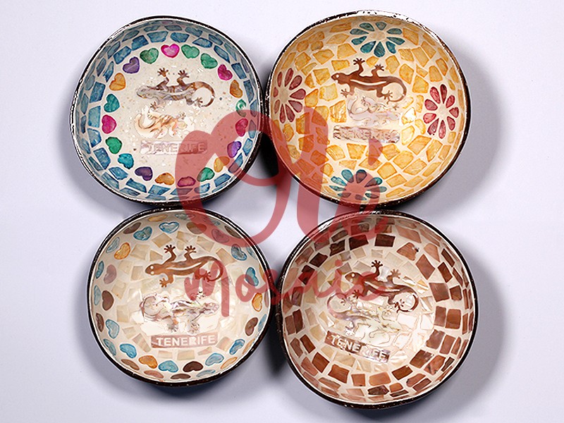 Olé Mosaic » Bols » 4 Bols de coco de 13 x 6 cm. Salamandra. Tenerife. Canarias.