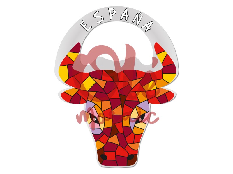 Abridor de metal decorado con la cabeza de un toro, un símbolo icónico de España. Este elegante abridor presenta un diseño en resina epoxi que combina tonos rojos, amarillos y naranjas, creando una representación vibrante y artística del toro. En la parte superior, se lee «ESPAÑA», realzando su carácter cultural. Un recuerdo funcional y visualmente atractivo que captura la esencia del folclore español, ideal para añadir un toque auténtico a cualquier hogar.