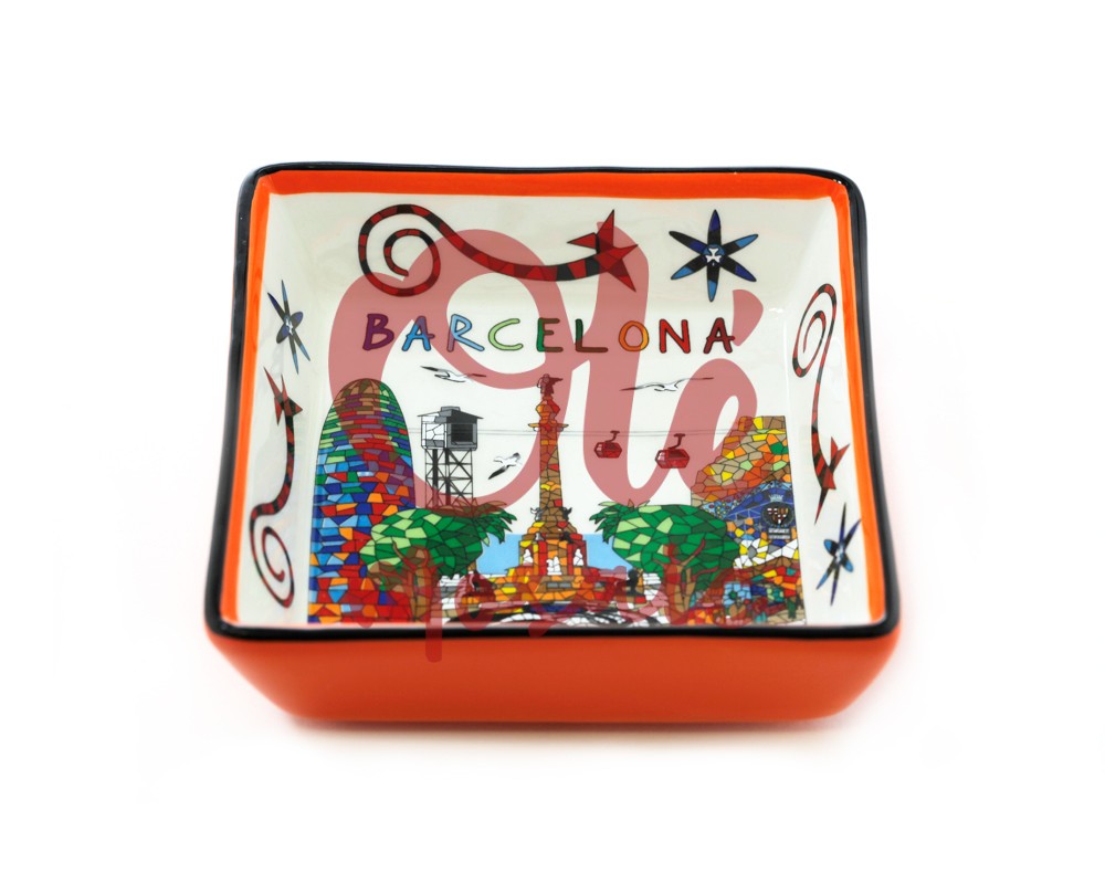 Este cuenco de cerámica de 11,5 cm es un auténtico homenaje a la vibrante ciudad de Barcelona, un souvenir perfecto para llevarse un pedacito de su belleza única. Con un atractivo diseño que combina una base suave en color beige y un borde vibrante en naranja, este cuenco captura la esencia de la arquitectura y la cultura de la ciudad. Decorado a mano con una colorida panorámica, presenta estructuras icónicas como la Sagrada Familia y el encantador Parque Güell, simbolizando el genio creativo de Antoni Gaudí. Los detalles artísticos se complementan con elementos emblemáticos como las palmeras y los teleféricos que caracterizan la vista de la ciudad, aportando un aire alegre y dinámico.