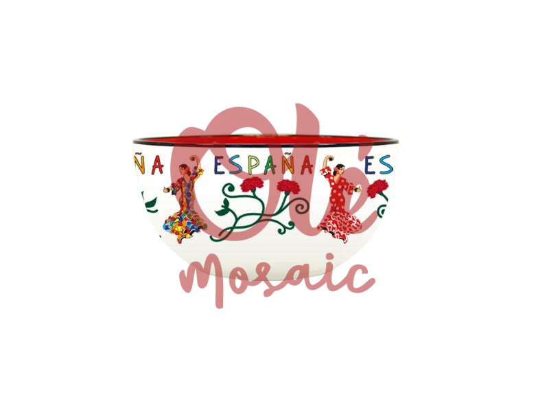 Su base blanca, en combinación con un borde rojo, resalta las ilustraciones y añade un toque de elegancia, mientras que el acabado brillante proporciona un atractivo visual que cautivará a cualquier amante del arte. Este bol es perfecto para dar un toque español a tu cocina o como un recuerdo inolvidable para quienes visitan el país. Como un auténtico souvenir de la cultura española, es ideal para quienes buscan una conexión significativa con su viaje. En Olé Mosaic, nos especializamos en la distribución de souvenirs de cerámica, asegurando la calidad y autenticidad en cada pieza, lo que convierte este bol en una opción excepcional para tiendas de regalos turísticos que deseen ofrecer artículos representativos de la tradición española.