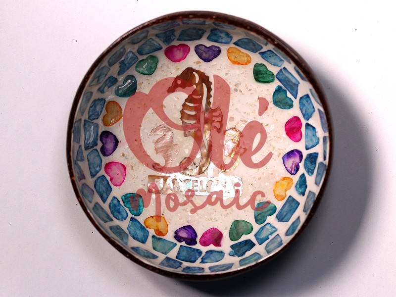 Olé Mosaic » Bols » Bol de coco azul. Caballito de mar. Mosaico. Barcelona.