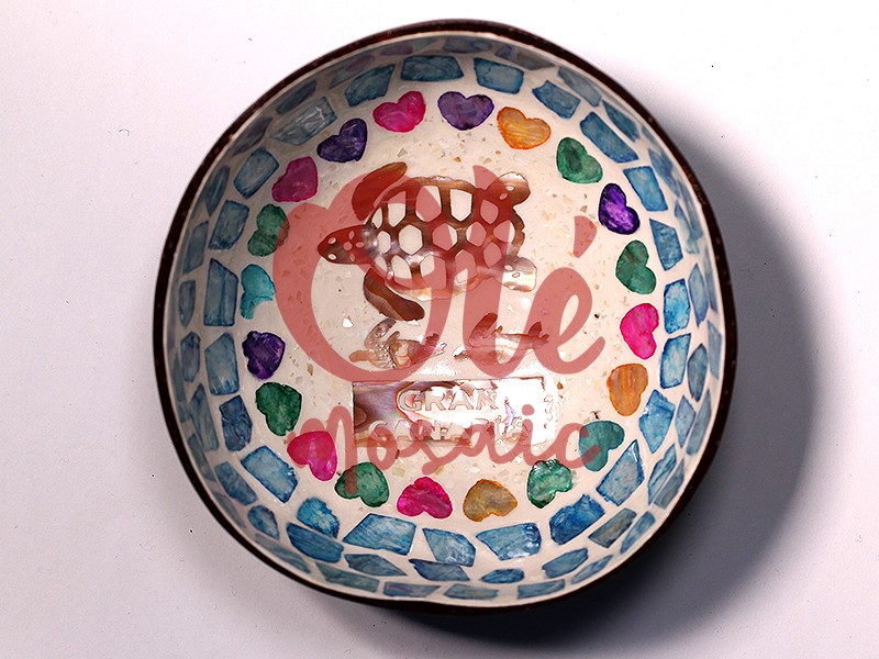 Olé Mosaic » Bols » Bol de coco azul. Tortuga. Gran Canaria. Fondo marino.