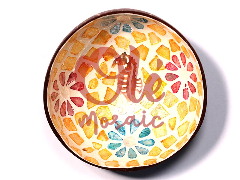 Olé Mosaic » Bols » Bol de coco con flores. Caballito de mar.