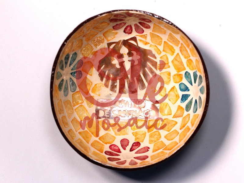 Olé Mosaic » Bols » Bol de coco con flores. Camino de Santiago.