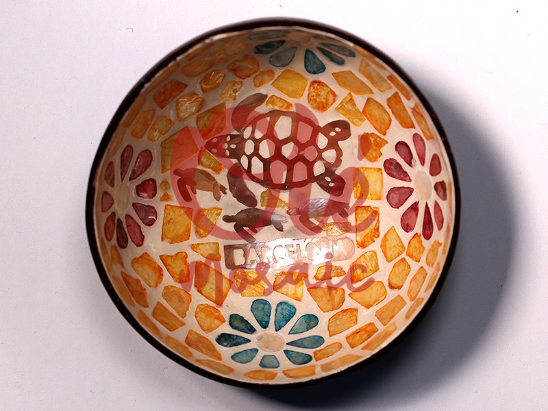 Olé Mosaic » Bols » Bol de coco con flores. Tortuga. Barcelona.