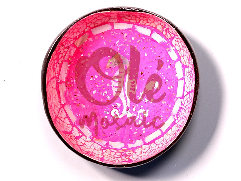 Bol de coco fucsia vibrante, decorado con un atractivo diseño de caballito de mar. Este original bol, elaborado artesanalmente, presenta un acabado brillante y detallados patrones que evocan el ambiente marino. El motivo central del caballito de mar, en color blanco, aporta un contraste único. Perfecto para uso decorativo o como recipiente para pequeños objetos, su colorido diseño atraerá todas las miradas en cualquier rincón de tu hogar.