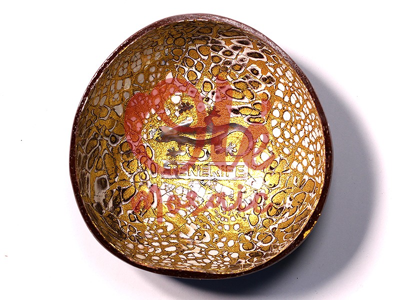 Bol de coco marrón, decorado con un elegante diseño de salamandra que representa la fauna de Tenerife. Este distintivo bol, elaborado con cáscara de coco, presenta un acabado brillante en tonos dorados y un intrincado patrón de textura que refleja la calidez de la isla. La palabra «TENERIFE» destaca en el centro, añadiendo un toque personal que lo convierte en un recuerdo ideal. Perfecto para decoración o como pieza de colección.