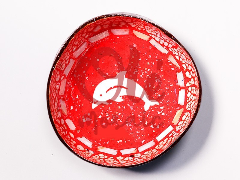 Olé Mosaic » Bols » Bol de coco rojo. Delfín. Fondo rojo.