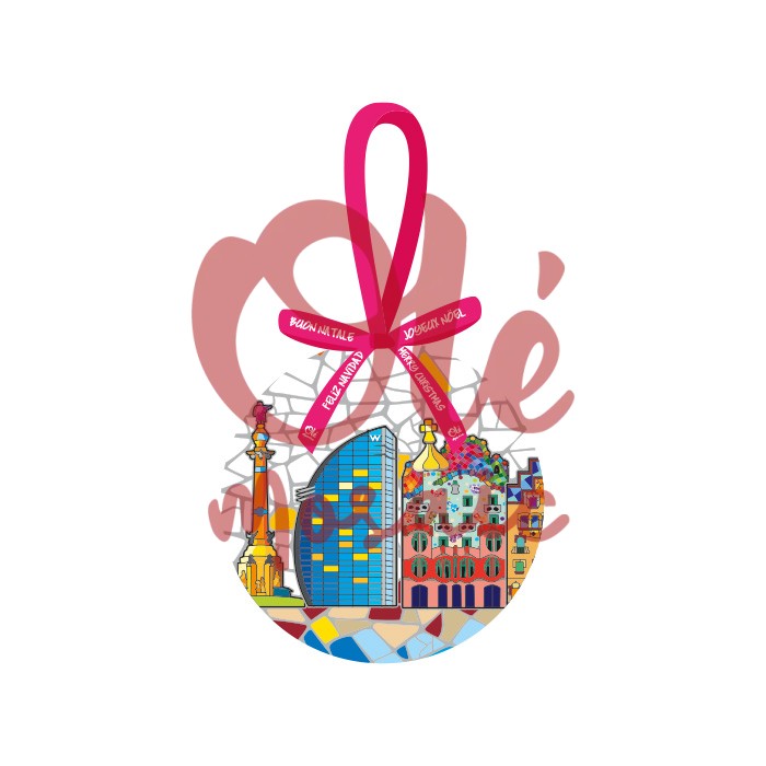 Cada detalle ha sido meticulosamente diseñado, destacando los colores brillantes y la rica diversidad de formas que representan la arquitectura modernista de Antoni Gaudí y otros monumentos significativos. Esta bola de Navidad no solo adornará tu hogar durante las fiestas, sino que también actuará como un recuerdo simbólico de las experiencias vividas en Barcelona. Como mayoristas de souvenirs de calidad, en Olé Mosaic ofrecemos productos auténticos que reflejan la cultura y el folclore local. Este encantador adorno navideño es una excelente opción para tiendas de regalos turísticos que buscan ofrecer a sus clientes un pedazo de Barcelona para llevar a casa.