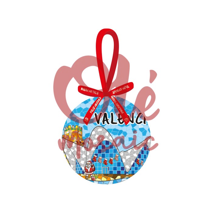Esta bola de Navidad decorativa es un encantador recuerdo de Valencia, que captura la esencia de la arquitectura y la cultura de la ciudad en un objeto festivo. Presentada en una elegante caja, esta bola circular destaca una vibrante panorámica del icónico edificio de la Ciudad de las Artes y las Ciencias, simbolizando la innovación y el arte que caracterizan a Valencia. El fondo, en tonos azules, evoca el cielo brillante de la región, mientras que los detalles coloridos, que representan el famoso mosaico valenciano, añaden un toque de autenticidad y estilo.