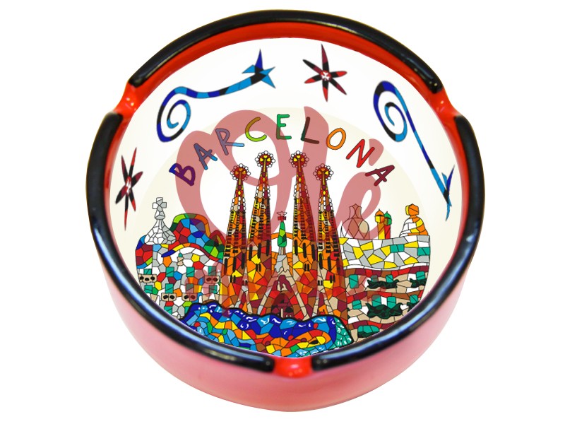Descubre nuestro encantador cenicero de cerámica de 10 cm, una pieza que captura la esencia vibrante de Barcelona. Este atractivo cenicero presenta una colorida panorámica de la emblemática Sagrada Familia, con un diseño inspirado en los magníficos mosaicos de Antoni Gaudí. Los detalles artísticos resaltan en una paleta de tonos beige y rojo, creando un contraste visual cautivador que lo convierte no solo en un elemento funcional, sino también en una pieza decorativa excepcional para cualquier hogar o espacio.