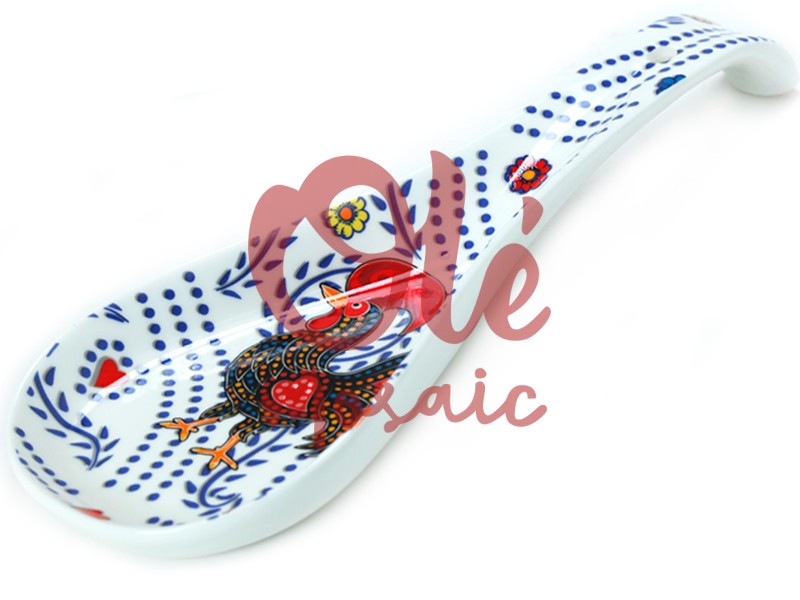 Olé Mosaic » Cucharones » Cucharón de cerámica. Gallos. Blanco