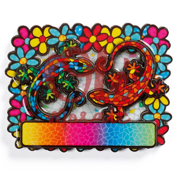 Olé Mosaic » Imanes » Imán de madera. Salamandra y flores.