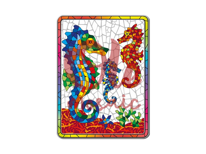Imán metálico con diseño de caballitos de mar, ideal para evocar la belleza marina de España. Este atractivo imán, de 8 cm, presenta una vibrante ilustración que captura la esencia del mundo submarino en colores vivos. La imagen muestra tres caballitos de mar en deslumbrantes tonos azules, verdes, rojos y amarillos, sobre un fondo que simula un mosaico, evocando los preciosos azulejos de la tradición artística española. El diseño artístico no solo embellece cualquier superficie metálica, sino que también es un recordatorio del ambiente marino que rodea las costas españolas, especialmente en regiones como Andalucía y la Costa Brava, donde estos encantadores seres marinos son un símbolo de la vida en el mar. Este imán es una decoración funcional para tu nevera y, además, un encantador recuerdo que refleja la autenticidad y el colorido de la cultura española. En Olé Mosaic, ofrecemos este y otros souvenirs de calidad al por mayor, ideales para tiendas de regalos turísticos que buscan productos representativos y atractivos para los visitantes. Este imán de caballitos de mar es una opción perfecta para quienes desean llevarse un pedacito del mar español a casa.