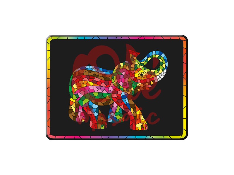 Imán decorativo de elefante con diseño de mosaico. Este atractivo imán de metal, de 8 cm, destaca por su vibrante representación de un elefante, elegantemente ilustrado con una explosión de colores que incluyen rojo, azul, amarillo y verde. El fondo negro realza cada uno de estos tonos, creando un contraste cautivador que atrae la mirada y añade un toque de alegría a cualquier superficie metálica, como neveras o pizarras.