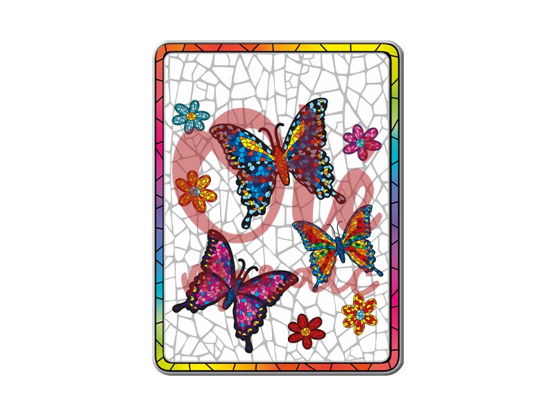 Este imán metálico de 8 cm es un encantador recuerdo que refleja la rica cultura visual de España. Adornado con coloridas mariposas sobre un fondo de estilo mosaico, este atractivo producto destaca por su diseño vibrante y pintado a mano. Las mariposas, en diversos tonos de azul, amarillo y rosa, dan vida a la pieza, acompañadas por flores que aportan un toque extra de alegría y belleza. El contraste de los colores vivos sobre la base blanca no solo resalta la destreza artesanal, sino que también evoca la luminosidad de los paisajes y el arte españoles.