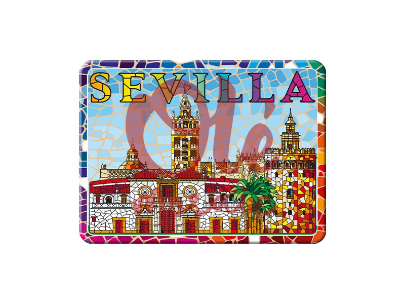 Olé Mosaic » Imanes » Imán de metal. Panorámica. Sevilla. 8 cm.