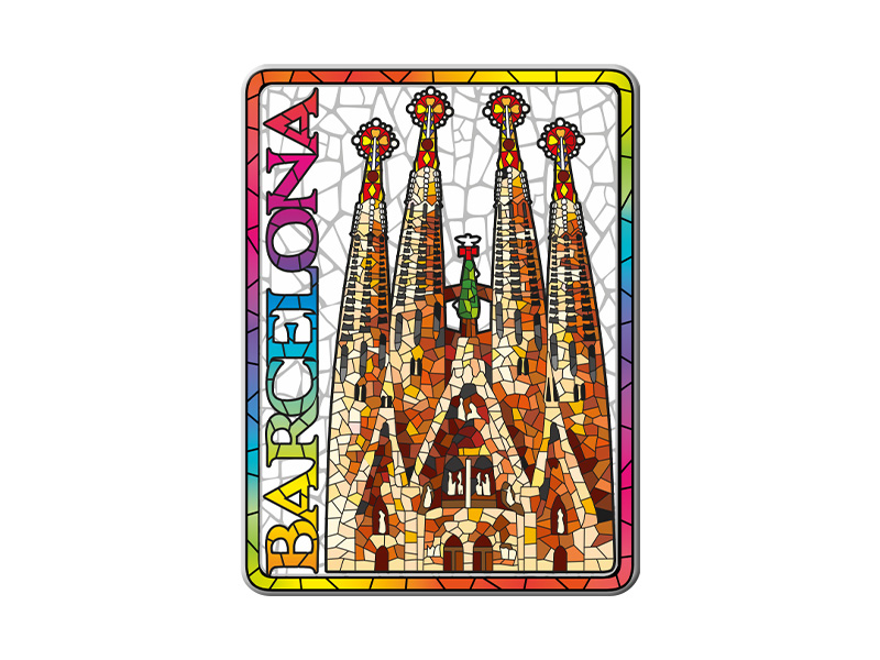 Este imán metálico de 8 cm es un ingenioso recuerdo de la Sagrada Familia, la joya arquitectónica de Barcelona y una de las obras más emblemáticas de Antoni Gaudí. Con un diseño vibrante y detallado, este imán presenta una hermosa ilustración que captura la majestuosidad de la catedral en tonos cálidos y colores brillantes. Los detalles, cuidadosamente elaborados, evocan la técnica del mosaico, característica de la obra de Gaudí, aportándole un toque de autenticidad y singularidad. En un lateral, el texto «Barcelona» destaca de forma llamativa, convirtiendo este imán en la opción perfecta para los turistas que desean llevarse un fragmento de esta cautivadora ciudad española.
