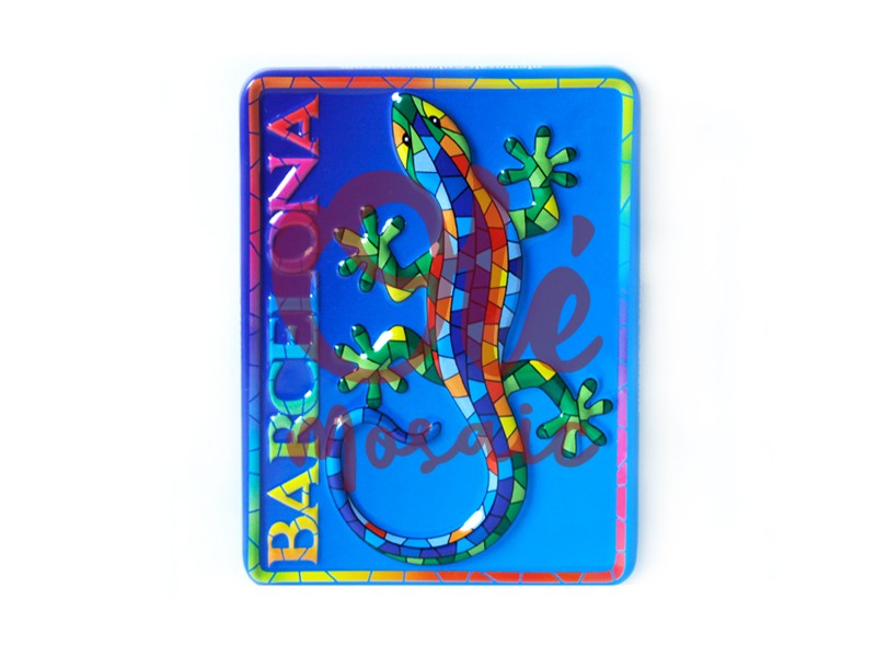 Olé Mosaic » Imanes » Imán de metal. Salamandra. Barcelona. Azul. 8 cm.