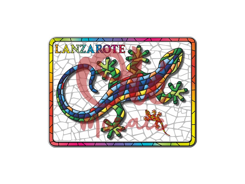 Imán metálico de 8 cm con una vibrante salamandra, símbolo icónico de Lanzarote. Este diseño colorido, inspirado en la cerámica tradicional de la isla, presenta un fondo de mosaico que realza los tonos azul, verde, rojo y amarillo de la figura. La palabra «Lanzarote» en la parte superior añade un toque distintivo y atractivo. Perfecto para recordar tu visita a esta preciosa isla canaria.
