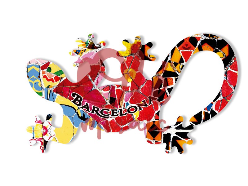Imán con forma de lagarto y un diseño vibrante que reproduce el colorido mosaico barcelonés. Con unas dimensiones de 10 cm, este imán destaca por sus detalles pintados a mano en tonos rojos, amarillos, verdes y negros, evocando la rica cultura y el arte modernista de la ciudad. La palabra «Barcelona» está elegantemente integrada en el diseño, convirtiéndolo en un souvenir ideal para recordar la esencia de esta emblemática localidad.