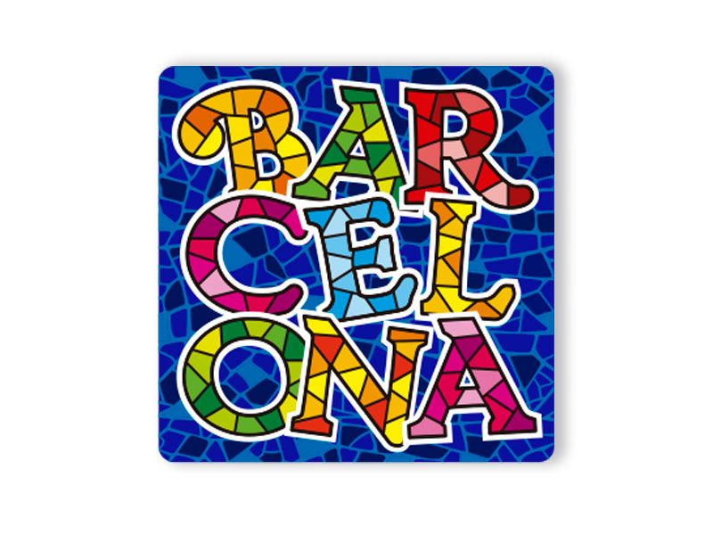 Olé Mosaic » Imanes » Imán de resina. Letrero. Mosaico. Barcelona.