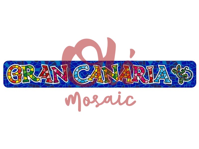 Imán con forma de letrero que reza «Gran Canaria». Su diseño vibrante y colorido destaca la belleza de la isla. Mide 11 cm y presenta un fondo azul con un estilo mosaico, combinado con letras en tonos amarillos, rojos, verdes y rosas que evocan la cultura canaria. Un atractivo detalle decorativo en forma de un lagarto verde añade encanto al imán, convirtiéndolo en el souvenir ideal para recordar tu visita.