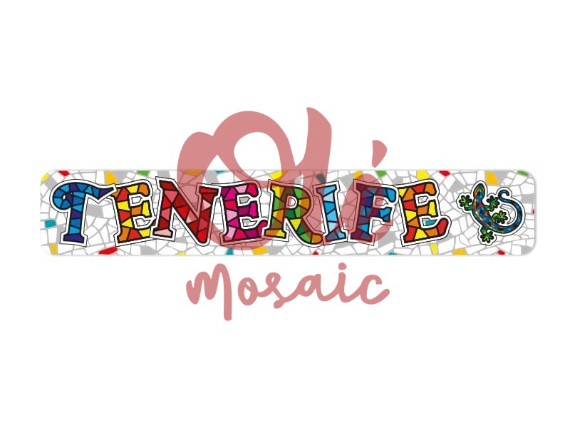 Imán con forma de letrero que celebra la belleza de Tenerife. Con unas dimensiones de 11 cm, presenta la palabra «TENERIFE» en letras grandes y coloridas, sobre un fondo de estilo mosaico. El uso de tonos brillantes y decoraciones llamativas, junto con un elemento distintivo que evoca la flora local, lo convierte en un recuerdo alegre y atractivo, ideal para rememorar los momentos vividos en esta hermosa isla canaria.