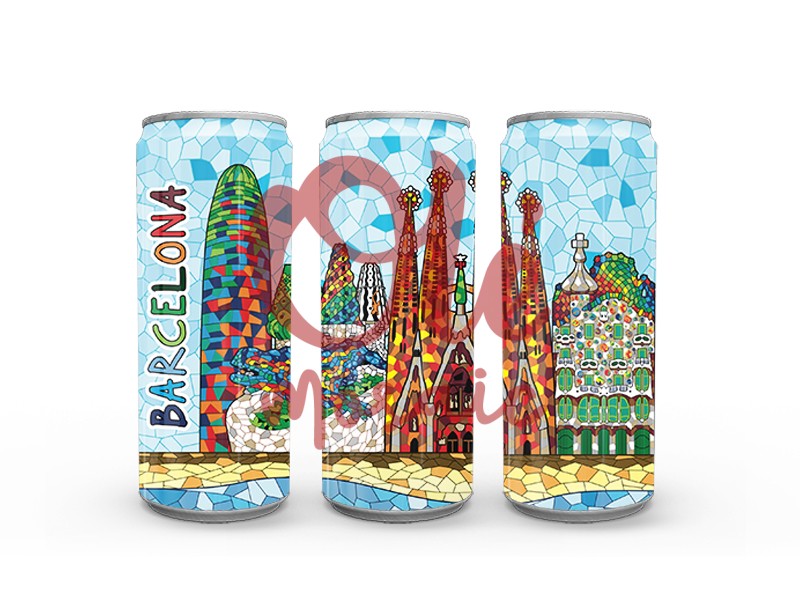 Esta lata de acero inoxidable de 500 ml, con una vibrante panorámica de Barcelona, es un recuerdo único que captura la esencia de la Ciudad Condal. Con un diseño colorido inspirado en la célebre arquitectura barcelonesa, la lata destaca la majestuosidad de la Sagrada Familia, los sinuosos contornos de Casa Batlló y las caprichosas formas del Park Güell, todo ello en un elegante estilo de mosaico. El fondo azul claro de la lata complementa los detalles brillantes y coloridos, creando una obra de arte en miniatura que no solo es funcional, sino también un atractivo souvenir.