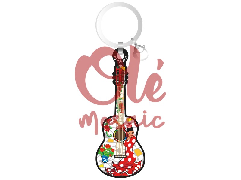 Este llavero no solo es un accesorio funcional para mantener tus llaves organizadas, sino que también actúa como un llamativo recuerdo que captura la esencia del folclore español. Con su autenticidad y relevancia cultural, este llavero de guitarra flamenca de «Olé Mosaic» es una excelente opción para tiendas de regalos turísticos que buscan ofrecer un recuerdo representativo de España. Añade este original llavero a tu colección de recuerdos flamencos y deja que el espíritu de Andalucía te acompañe siempre.