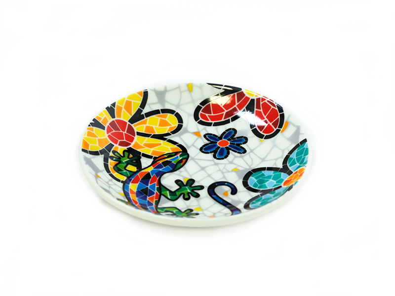Olé Mosaic » Platos decorativos » Plato de cerámica de 10 cm. Salamandra y flores. Blanco.
