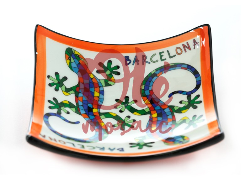 El borde negro marcado añade un toque contemporáneo y elegante a la pieza, mientras que el acabado artesanal resalta la dedicación y el esmero que se pone en la creación de cada plato. Este recuerdo no es solo un objeto decorativo, sino un auténtico souvenir que evoca la esencia de Barcelona, ideal para turistas que buscan llevarse un fragmento cultural de esta emblemática ciudad. En Olé Mosaic, nos enorgullecemos de ofrecer souvenirs de cerámica auténticos que celebran la identidad cultural de sus lugares de origen. Este plato de salamandras es una excelente elección para tiendas de regalos turísticos y representa una opción ideal para quienes valoran la artesanía y el diseño.
