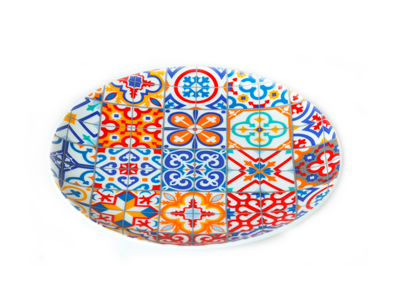 Este plato no solo es una excelente opción como elemento decorativo, sino que también destaca por su funcionalidad, siendo ideal para servir aperitivos en cualquier reunión. Su superficie con acabados brillantes y colores saturados añade un toque de frescura y elegancia a la mesa, convirtiendo este artículo en un regalo memorable y representativo de la experiencia turística.