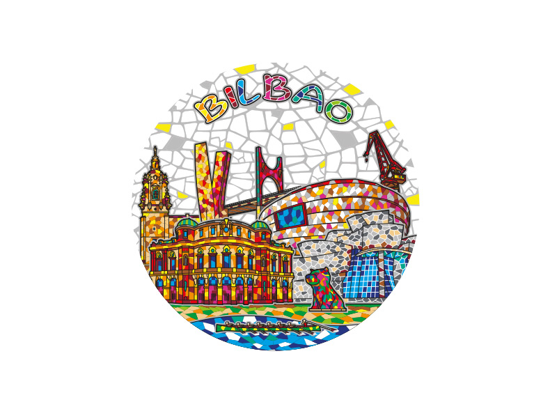 Los brillantes tonos de la ilustración aportan vida y alegría, haciendo de este posavasos un elemento decorativo ideal para cualquier hogar. La mezcla de colores vibrantes en el diseño no solo representa la belleza de Bilbao, sino también su dinamismo cultural y creativo. Este souvenir, además de ser útil, invita a los visitantes a recordar la calidez y autenticidad de Bilbao con cada uso.