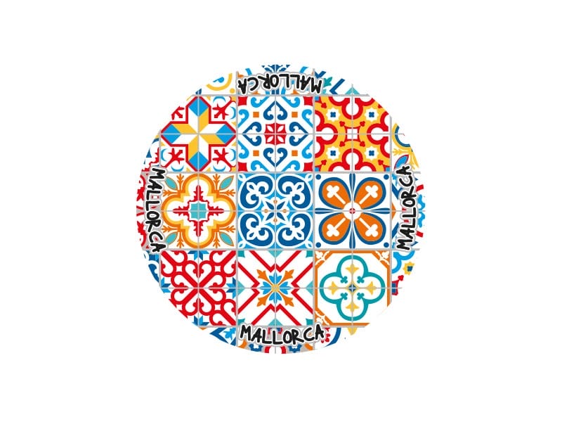 Posavasos de cerámica decorado con un vibrante mosaico inspirado en la tradición mallorquina. Este elegante posavasos presenta un diseño circular repleto de coloridos motivos geométricos y florales en tonos rojos, azules y amarillos, junto a la palabra «MALLORCA». Sus elementos visuales evocan la belleza del arte cerámico típico de la región, aportando un toque distintivo y cultural a cualquier mesa. Un souvenir perfecto para recordar la esencia de la isla.